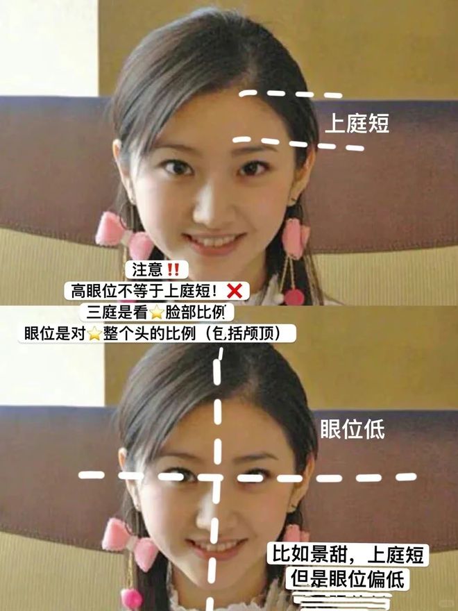 一般来说,高眼位的人,中庭都会显得长,但高眼位不等于中庭长,比如景甜。