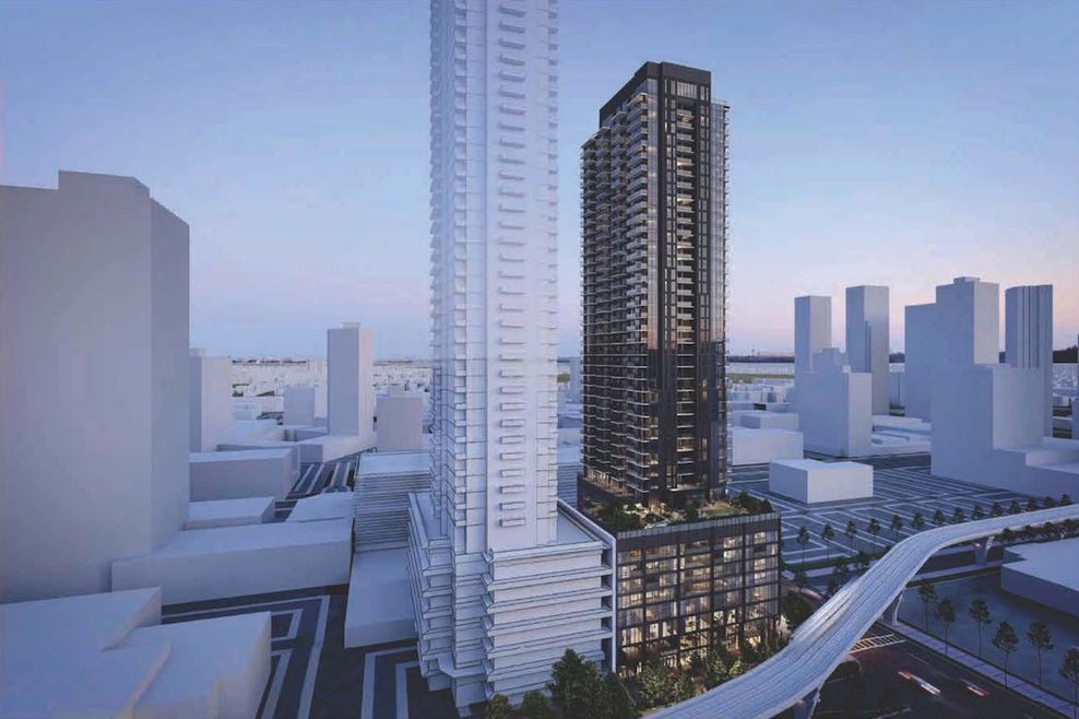 隨後在2025年2月即2025年春季公寓預售啟動前夕,市政府考慮了一項修訂方案,擬建一座476英尺高、44層的塔樓,共包含496套住宅,其中376套為分層地契市場公寓,120套為安全封閉式租賃住宅。租賃住宅的增加是通過提高塔樓高度以及將裙樓底部的大部分辦公空間改建而成。因此,辦公和零售/餐飲總面積減少至約61,000平方英尺。
