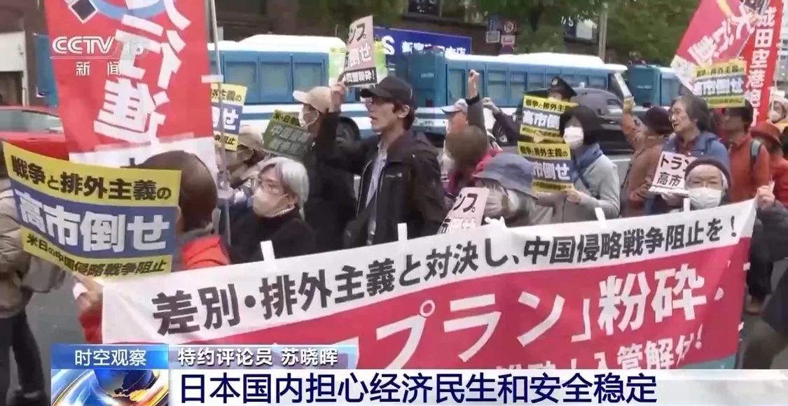 特約評論員 蘇曉暉:在日本國內,民眾的不滿首先針對的是高市錯誤言論嚴重沖擊中日關系,影響兩國經貿合作和人員往來,也直接損害了日本自身的經濟和民生和相關產業。同時,很多的日本民眾擔心的是,高市的錯誤言論會帶給日本更大的安全風險,即使高市在渲染所謂周邊威脅,在吸引民眾的注意,但是很多民眾看到的是近年來日本國內的右傾化進一步的嚴重,日本右翼興風作浪。