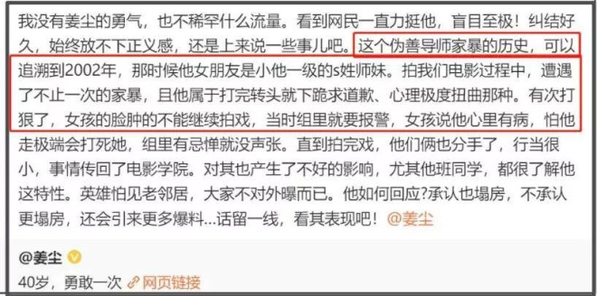 簡單回顧一下風波始末,38歲女演員姜塵出面爆料張頌文家暴,一時之間圍繞在張頌文身邊的真真假假爆料接連不斷,一會兒曝他涉賭一會兒曝他偷逃稅一會兒曝他潛規則。