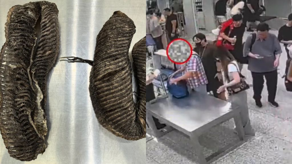 近日,一名男子携带0.6kg濒危蝠鲼制品,经福田口岸过关被查。