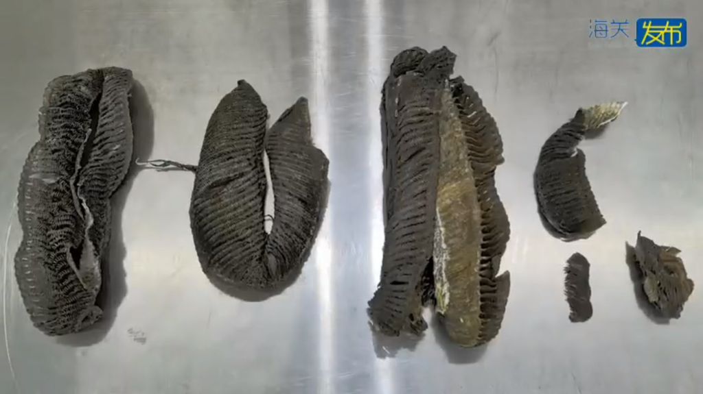 皇岗海关检获进境旅客携带濒危蝠鲼制品0.6kg。(海关发布)