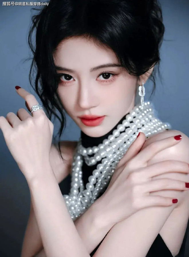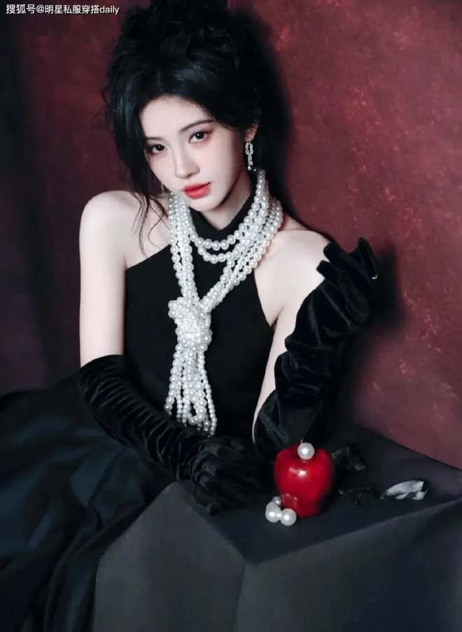 配饰选择是此次造型的点睛之笔。华丽的珍珠项链与Fred斐登珠宝形成巧妙呼应——作为品牌中国区大使,她佩戴的珠宝将经典设计与璀璨钻光相结合,耳环的精致线条与项链的温润光泽相互映衬,既平衡了黑色丝绒的沉稳,又为造型注入了贵气感,完美诠释了“少即是多”的搭配哲学。