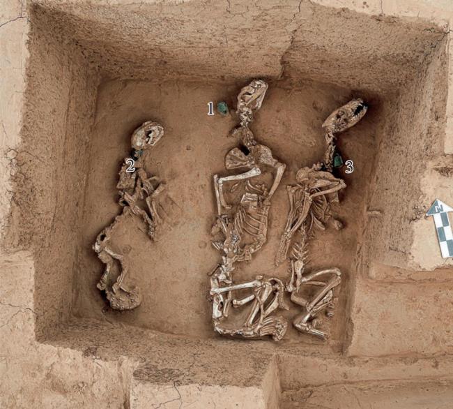 除野生動物外,考古人員還在大型祭祀坑中發現人、象、馬等骨骼,其中以馬最多。各坑馬的數目均為偶數,部分馬頭頂有凹陷坑,大小不一。