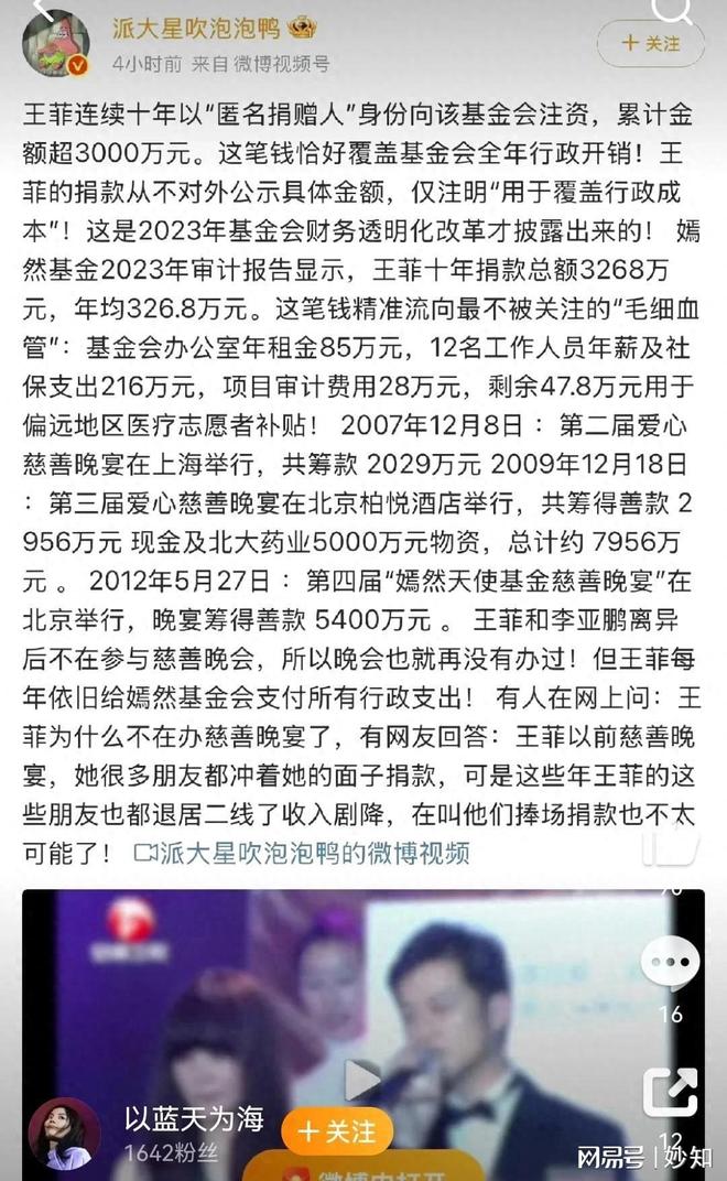 _NEWSDATE: 2026-01-19 | News by: 妙知 | 有0人参与评论 | 专栏: 王菲 | _FONTSIZE: _FONT_SMALL _FONT_MEDIUM _FONT_LARGE2026年初,嫣然天使基金会的财务透明化改革,意外揭开了一个藏了十年的秘密。王菲从2013年到2023年,以匿名身份累计捐出3268万元,专门用来覆盖基金会的运营成本。这笔钱不是捐给患儿手术的“显眼账”,而是花在办公室房租、员工工资这些最不起眼的地方,却默默托住了整个公益项目的根基。