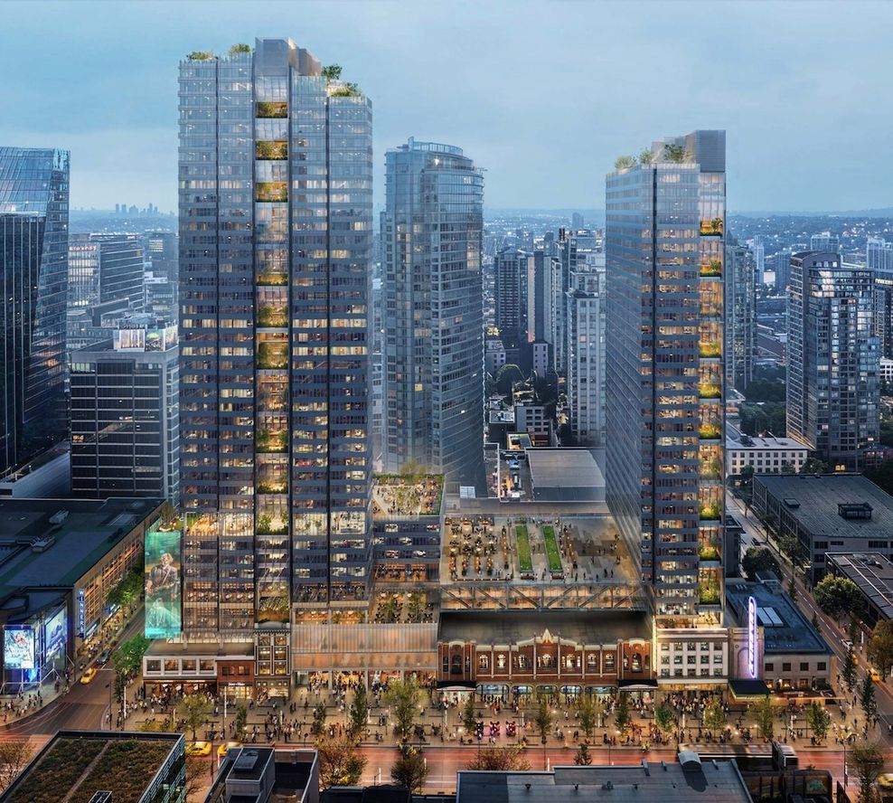 2025年3月修订的温哥华市中心格兰维尔街800-876号重建项目概念方案。(Perkins&Will/Bonnis Properties)