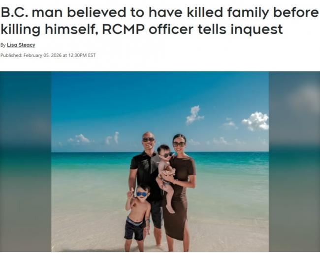 日期: 2026-02-06 | 来源: 加国无忧 | 有0人参与评论 | 专栏: 亚裔 | 字体: 小 中 大在卑诗省北部一起震惊全国的亚裔家庭惨剧中,一家四口于2023年被发现身亡。近日的验尸官聆讯中,警方首次详细披露了他们对这起“杀人后自杀”案件经过的判断。