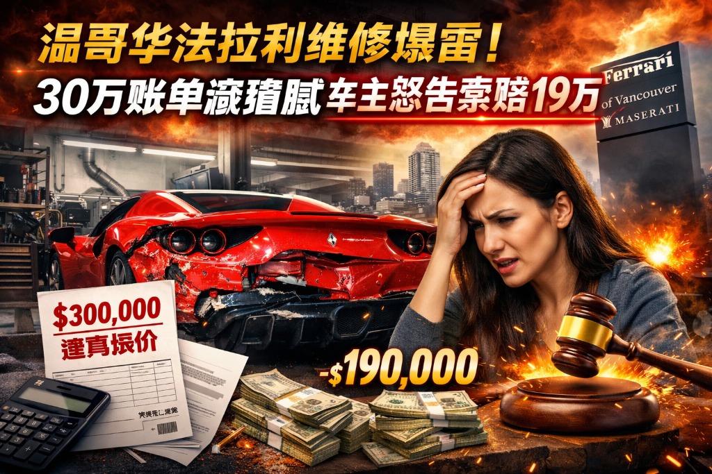 日期: 2026-03-19 | 来源: 加西网 | 有0人参与评论 | 字体: 小 中 大(加西网综合)温哥华一名车主近日提起诉讼,指控一家法拉利经销商及高端车身维修厂在车辆维修过程中大幅抬高零件价格,导致其豪华跑车转售价值大幅缩水。