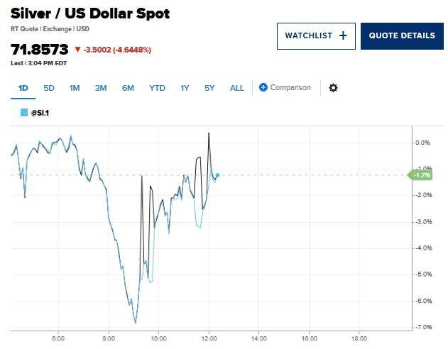 与此同时,现货白银一度下跌超13%,最低触及65.515美元/盎司。