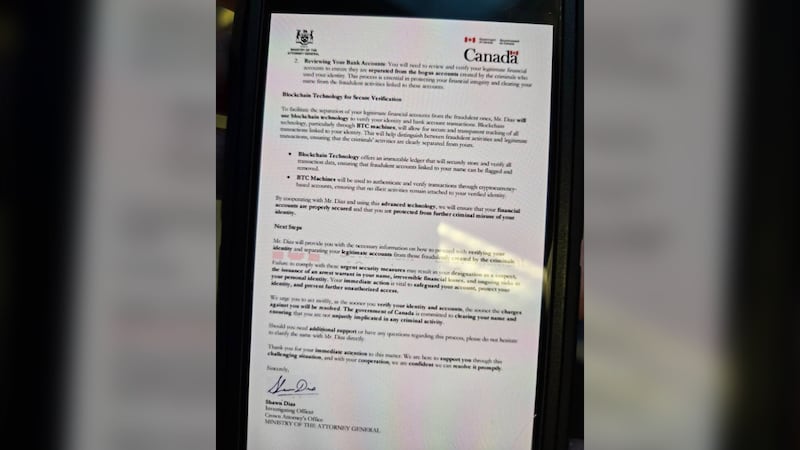周四,另一名受害者報告稱,他接到一個詐騙電話,對方自稱是“加拿大政府檢察官辦公室”(一個根本不存在的辦公室)的工作人員,並告訴他,他的身份正在被用於犯罪活動。