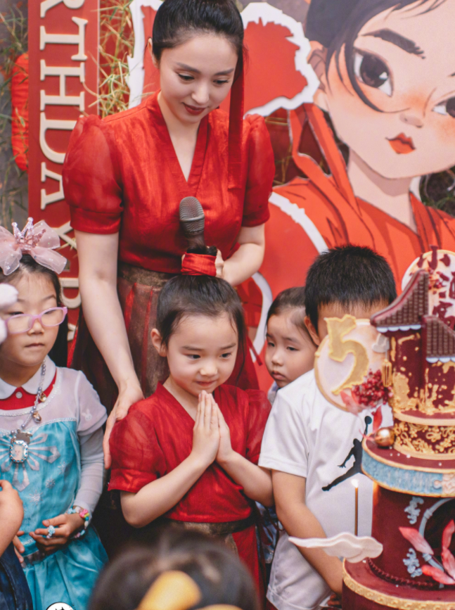 女儿生日当天,董璇为女儿举办了一个非常隆重的“花木兰”主题生日会,母女两人都穿着红衣现身,看起来好像颇为隆重。