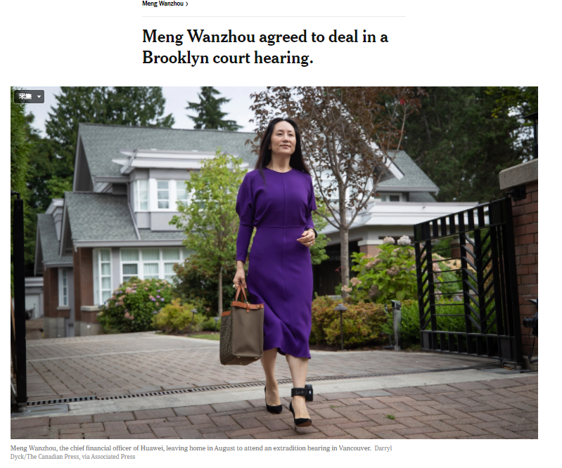 华为技术有限公司高管孟晚舟与美国司法部就针对她的刑事指控达成了协议,使得这一导致中国、加拿大和美国之间紧张关系的案件取得突破。