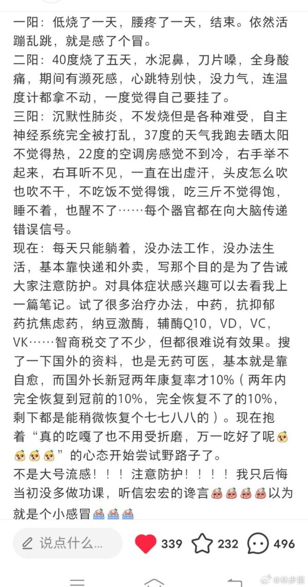 “感染三次后,每天只能躺着,没办法工作。才恍然大悟,新冠不是感冒,也不是流感。然而,迟了。”