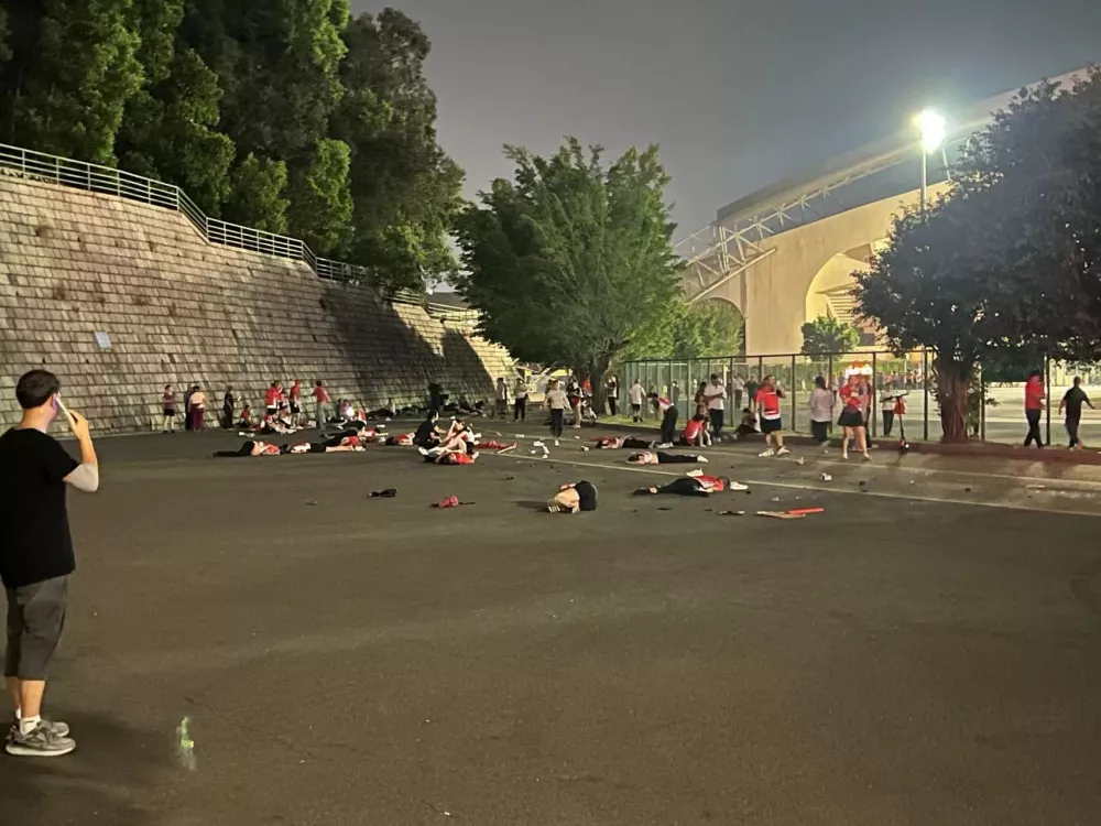 同时,跑道上也散落了大量球鞋,并有救护人员正在进行心肺复苏等紧急急救,可想像事发当时的情况相当危急。
