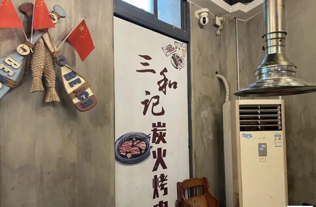 · 曾经一天流水只有130块 ·两年前,“被??挡住的烤肉店”的店名叫“三和记炭火烤肉”。