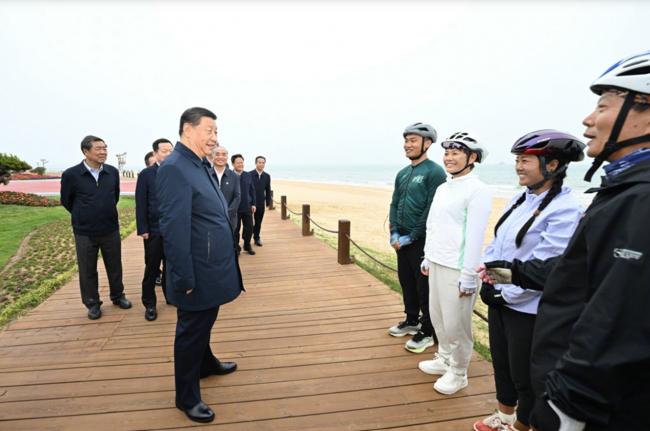 X 推主“罗翔”也分享了一段习近平出行山东省日照市的影片,影片中习近平热情地跟“路过的业馀骑行者”打招呼,并向这些脚踏车骑士“指示”要将身体顾好、将家庭建设好。然而“罗翔”指出,这些“业馀的骑行者”身分都不简单,其中一位年老男子是中国解放军海军的少将副主任;较年轻的男子是陆军少校兼参谋;绑辫子的女子是山东省委宣传部的调查研究员;短发女子则是山东省军区政治处中校副团职干事,个个大有来头。