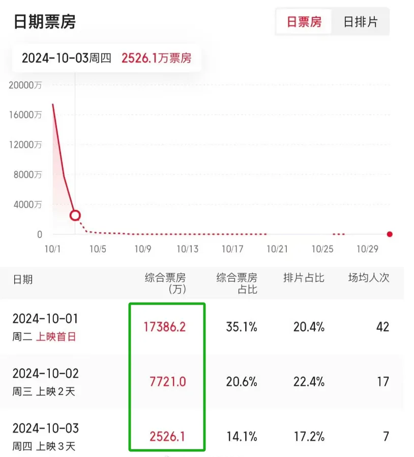 这部神奇的电影,甚至烂到了三天内票房极具下跌的强反差。
