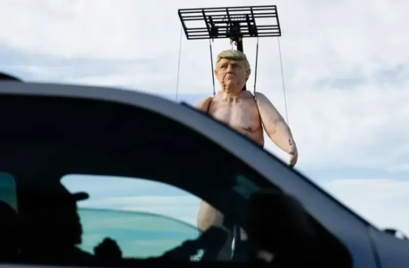 根據《費城問詢報》報道,當地時間周四,一座巨大的川普裸體雕像出現在街頭,已是近來第2座,但最新的這座更高、更猥瑣,細節也過於精致,被用起重機掛在肯辛頓大道上,路人紛紛投以好奇的眼光,還有人建議可以把一面波多黎各的國旗拿來,包在川普雕像的下半身。