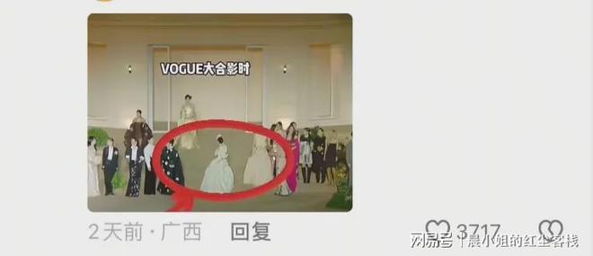 现场视频显示,在主编刘冲引导刘亦菲、杨幂入场时,钟楚曦身着宽达一米的古董礼服未主动挪位,导致中心区域拥挤,刘冲甚至不慎踩到刘亦菲裙摆,这与古力娜扎主动让行、龚俊退至后排的举动形成鲜明对比 ,被解读为“缺乏眼力见”。