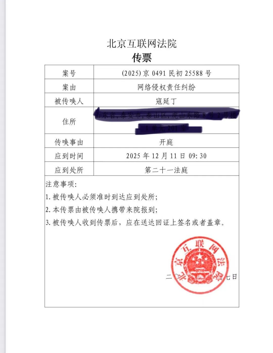百度AI制造谣言名誉侵权,事实清楚,证据确凿,北京市互联网法院很快立案受理,并发来盖着法院大红印章的开庭传票,而且明文要求要在送达回证上签名盖章,这是有法律效力的。这样的传票,法院还有另一张发给了被告百度,同样会要求它在回证上签名盖章。- 新闻来源于其它媒体,内容不代表本站立场!