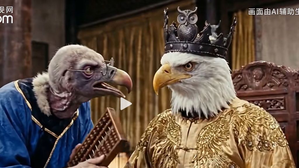 日前,央视旗下的「AI奇谈」栏目发布的AI武侠短片《流金谷恩仇录》在网路上疯传,短时间之内,点赞破百万。《流金谷恩仇录》看似讲的是动物江湖,但其实是以动物武侠故事来隐喻美伊战争,让人迅速对中东局势有一个粗略理解。