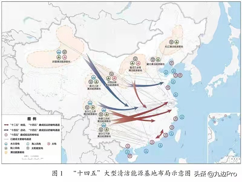首先要有大量水源,因为核电站的运行和冷却需要大量的水,这也是为啥我国的核电站一般都在沿海,法国和德国他们一般都建在湖边,或者为了建核电站干脆搞个大坝。下图是我国十四五规划的大型能源基地布局图,核电都在沿海。