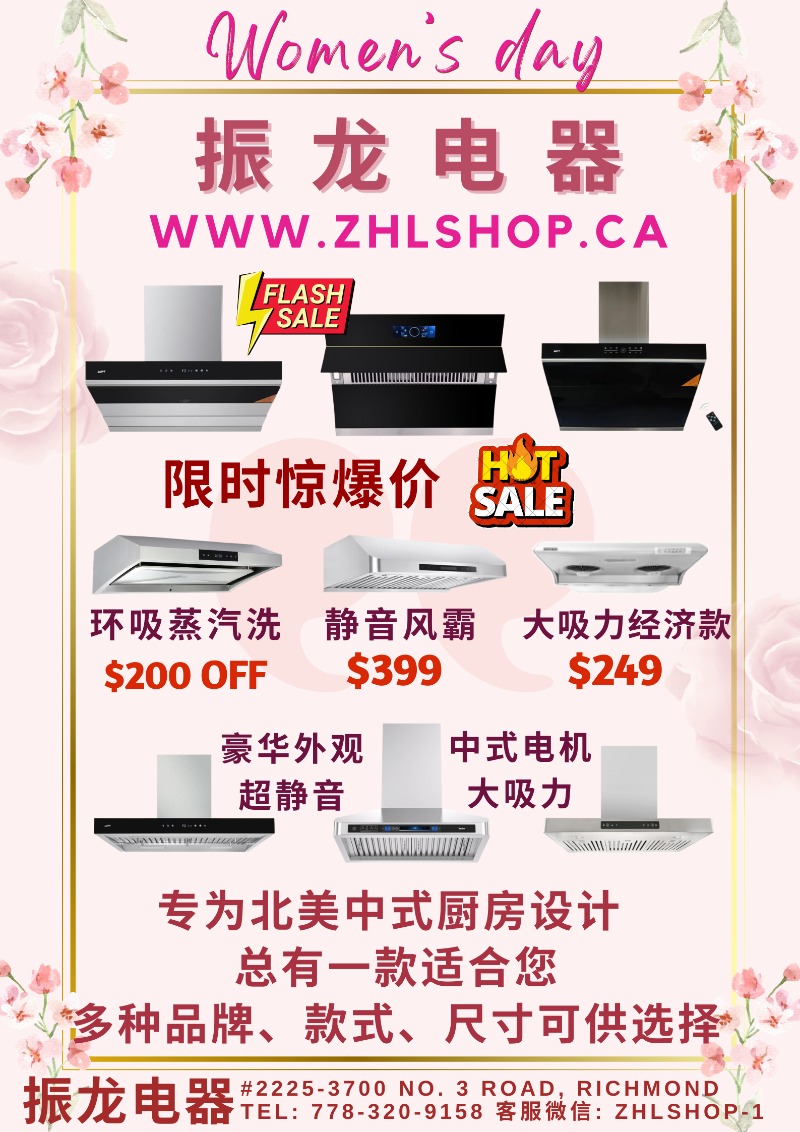 [欢迎建筑商,装修公司,安装师傅前来洽谈合作!]大吸力静音抽油烟机(老板品牌侧吸式、蒸汽洗、自动清洗等),震撼价最高直减$200